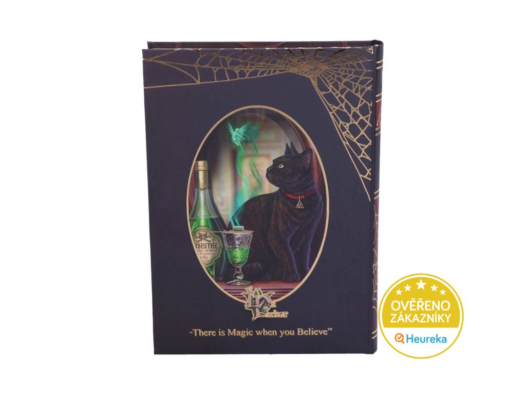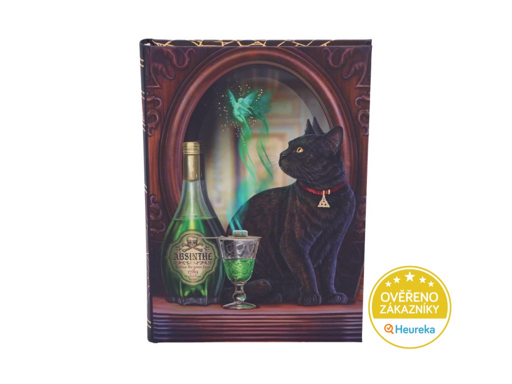 Stylový nelinkovaný blok se záložkou s motivem kočičky a zelené víly od malířky Lisy Parker. Tato černá kočka dohlédne na všechny vaše nápady a zápisky - perfektní jako deník nebo třeba kniha receptů. Formát A5.