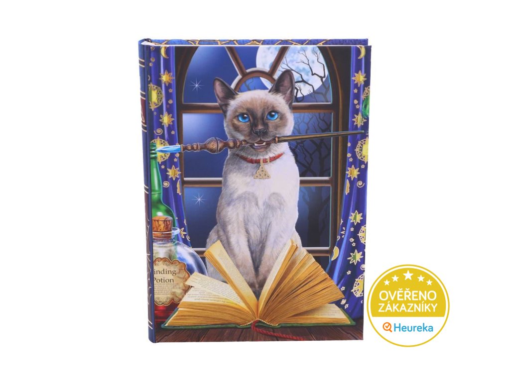 Stylový nelinkovaný blok se záložkou v magickém kočičím designu od malířky Lisy Parker. Tato kouzelná kočička pohlídá všechny vaše nápady a zápisky - perfektní jako deník nebo třeba kniha receptů. Formát A5.