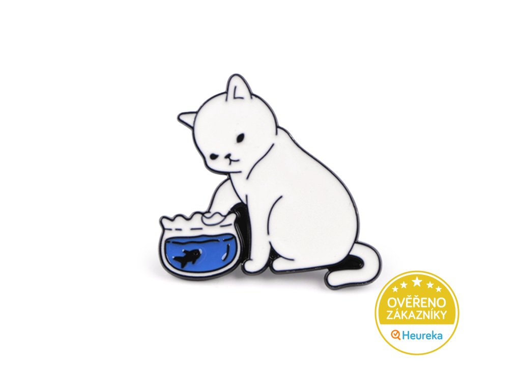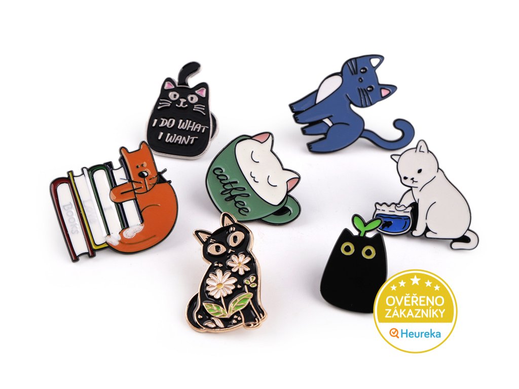 Veselá emailová brož s kočičkou v jedné se 6 designových variant. Parádní na na tašku, džínovou bundu nebo třeba na sepnutí šátku. Potěší každou kočkomilku!
