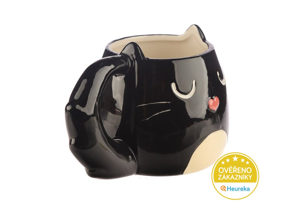 Originální keramický hrnek ve tvaru kočičí hlavičky s chlupatým ocáskem místo ucha. Káva i čaj z něj budou hned o kočičí vous lepší! V dárkové krabičce.