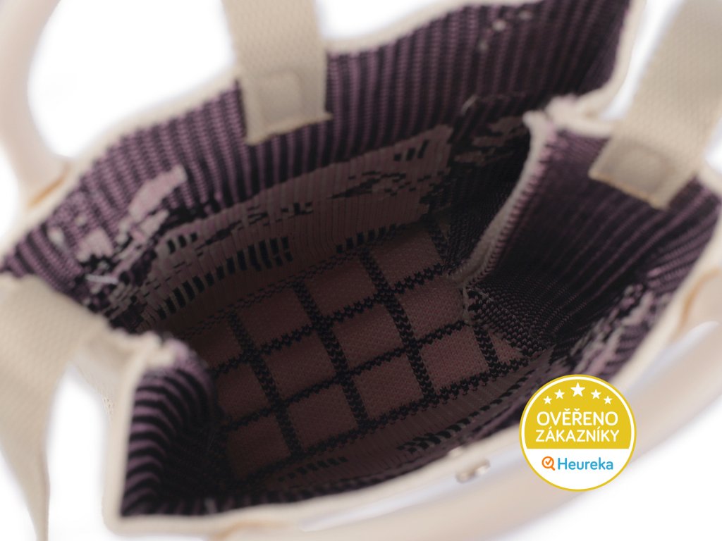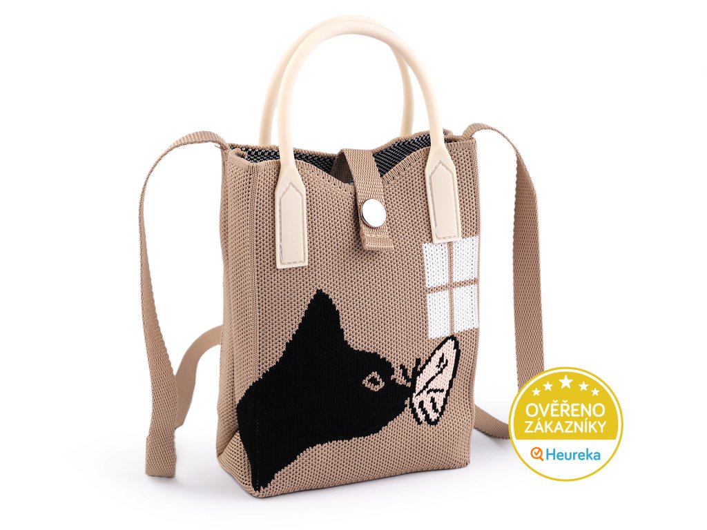 Originální menší kabelka z pleteniny s motivem kočičky a motýla. Perfektní do práce i do města. Kabelka se uzavírá poutkem s patentem, má dvě silikonová ucha a textilní popruh. Bezpečně pohlídá vaši peněženku, klíče i mobil.