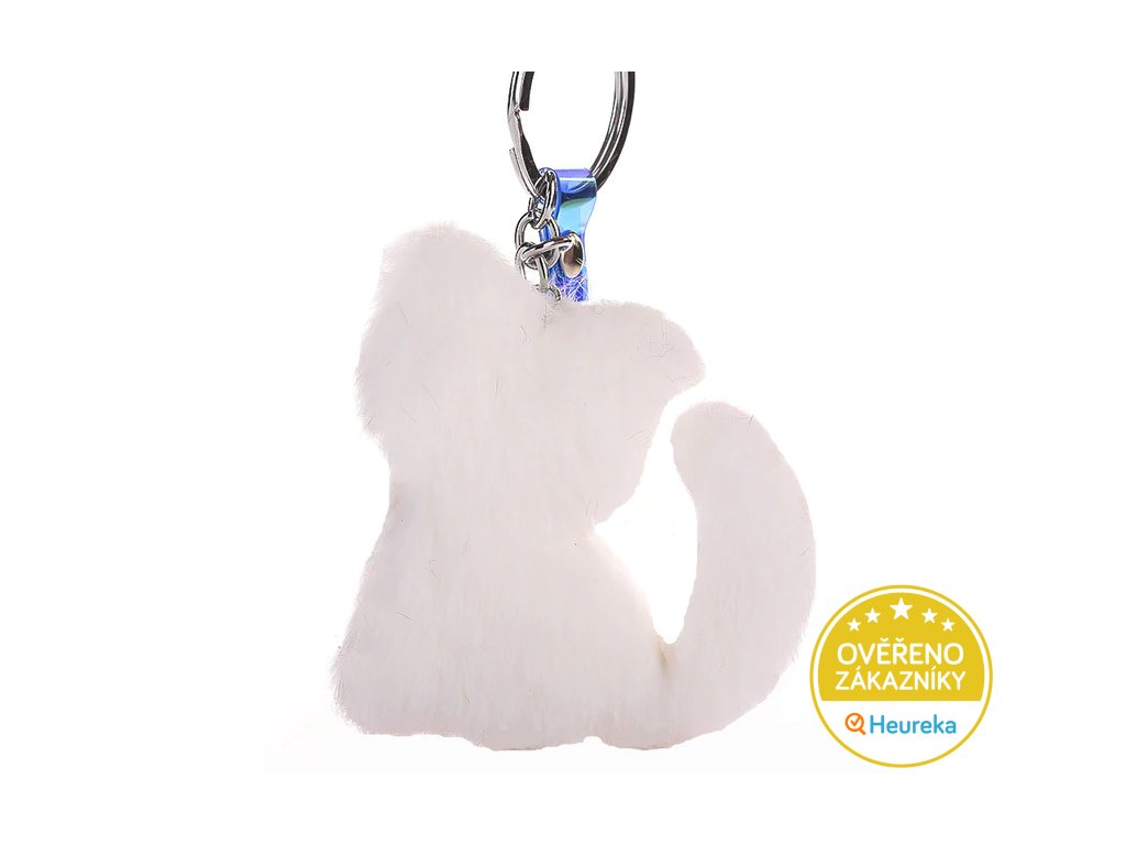 Hebká plyšová kočičí klíčenka s pevným kroužkem a poutkem. Perfektní na klíče, nebo třeba jako ozdoba batůžku či kabelky.