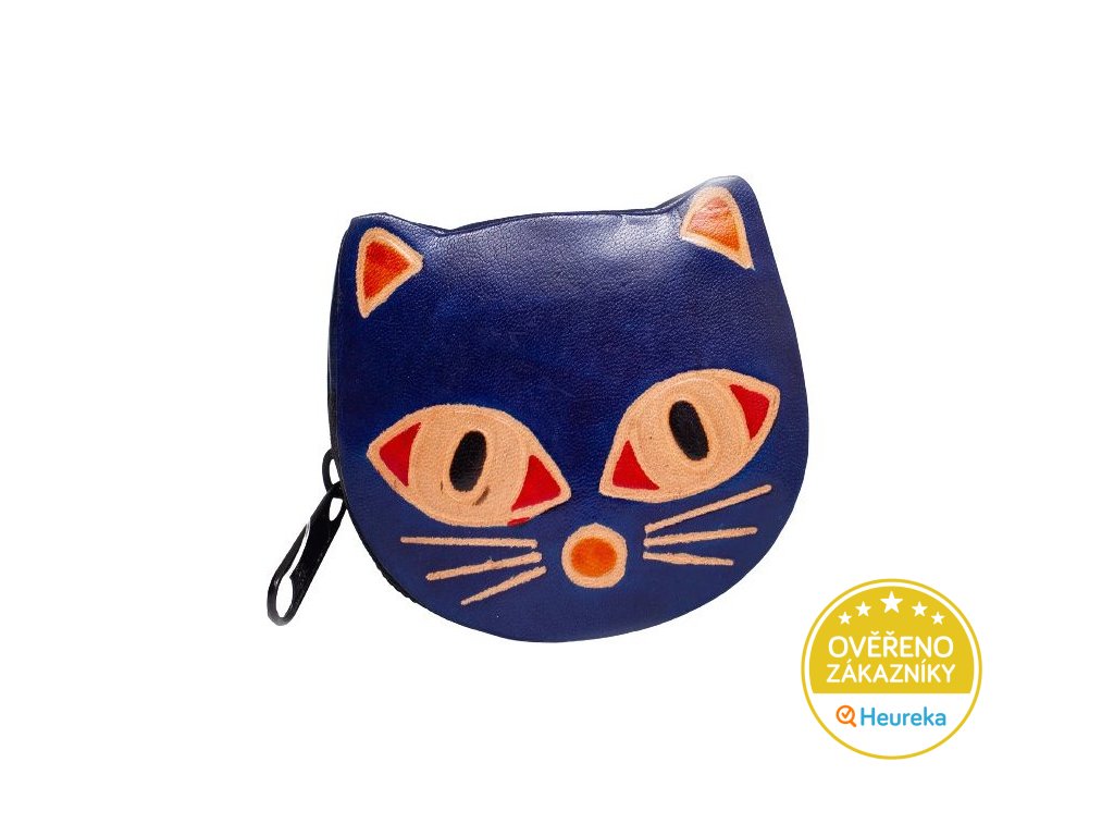 Krásně zpracovaná ručně malovaná kožená peněženka ve tvaru modré okaté kočičky. Skvěle ji využijete i jako klíčenku nebo jako pouzdro na drobnou kosmetiku. Zapíná se na zip.