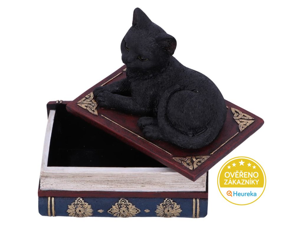 Originální, ručně malovaná, masivní krabička s reliéfem černé kočičky. Perfektní jako šperkovnice, na tarotové karty nebo poklady. Velmi krásný dárek pro milovnici koček.