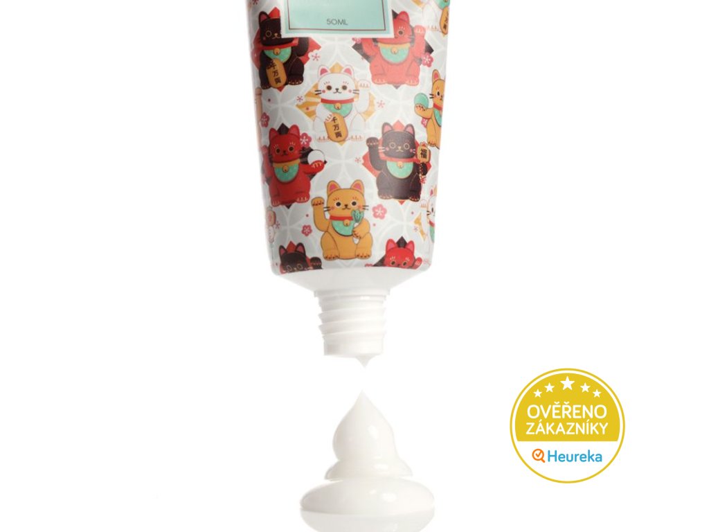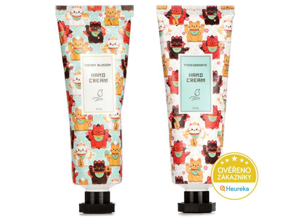 Hydratační krém na ruce s kočičkami pro štěstí Maneki Neko - Lucky Cat. S vůní granátového jablka nebo s vůní třešňových květů, perfektní do každé kabelky. Objem 50 ml.