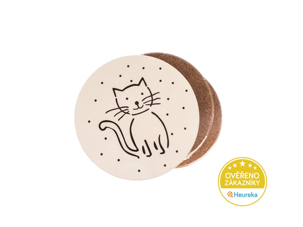 Kulatý podtácek s kočkami - korková sada 6 ks