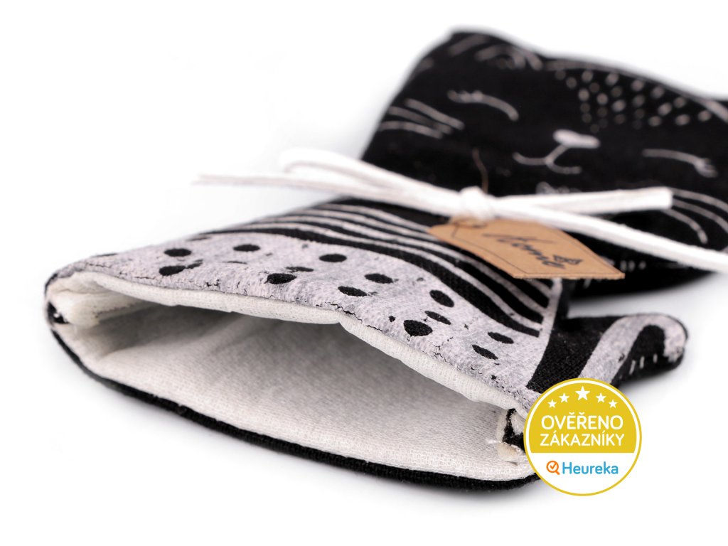 Látková dekorace kočka na láhev - černá, bílá