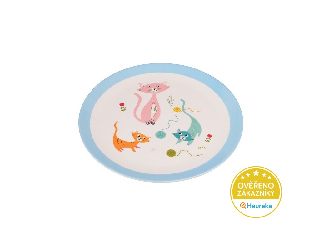 Veselý talíř se třemi hrajícími si kočičkami. Každá svačina z něj bude chutnat přímo pohádkově.