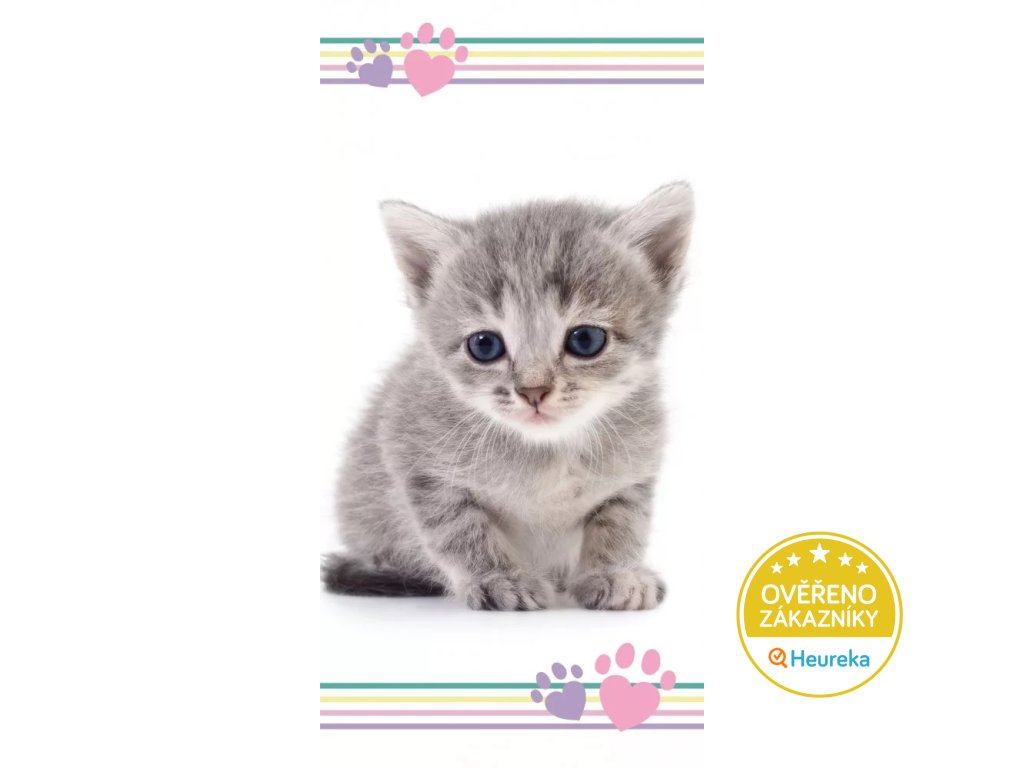 Velká osuška ze savé bavlny s roztomilým koťátkem a pastelovými tlapkami ve tvaru srdíček. Hravý design si zamiluje každá milovnice kočiček. Rozměr 170x40 cm.