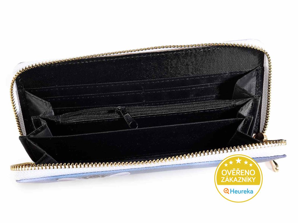 8 přihrádek na karty, 2 přihrádky na doklady, 3 přihrádek na bankovky, zapínací přihrádka na mince