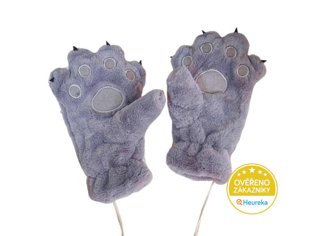 Hřejivé rukavice stylu palčáků ve tvaru kočičích pacek s drápky. Plyš a kožešinka udrží ty vaše tlapky pěkně v teple. S praktickou šňůrkou proti ztracení. Více barev. Vhodné na větší dětskou, teenage, nebo menší dámskou ruku. UPOZORNĚNÍ: barevný odstín se může mírně lišit od fotek.