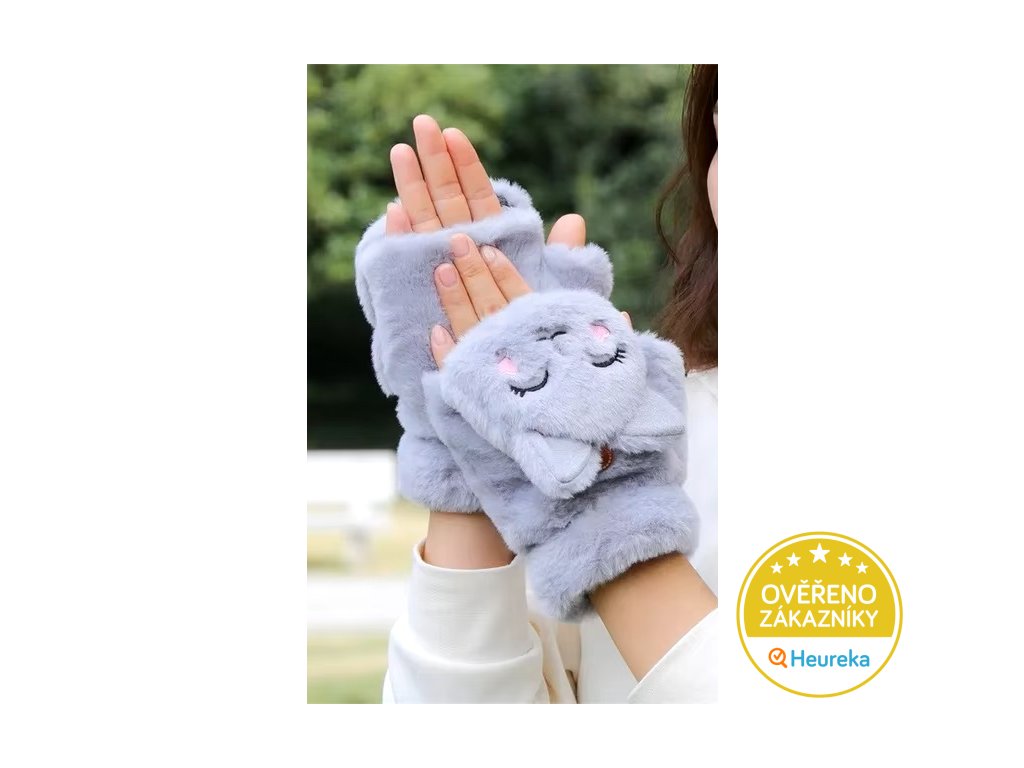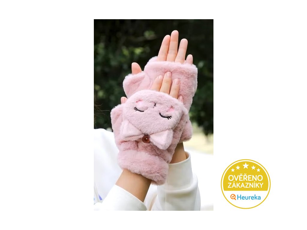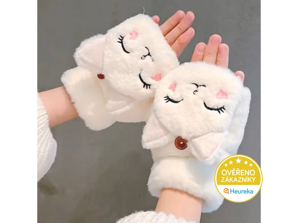 Plyšové rukavice s kočkou a s ušima - 4 barvy