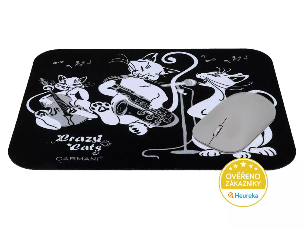Vtipná a praktická podložka pod myš s kočičím orchestrem. Parádní do kanceláře, do školy i na doma, k laptopu i PC. S rozměrem 18 x 22 cm se pohodlně vejde i do batohu či tašky na notebook. Každá myš se s těmito kočkami hned skamarádí!
