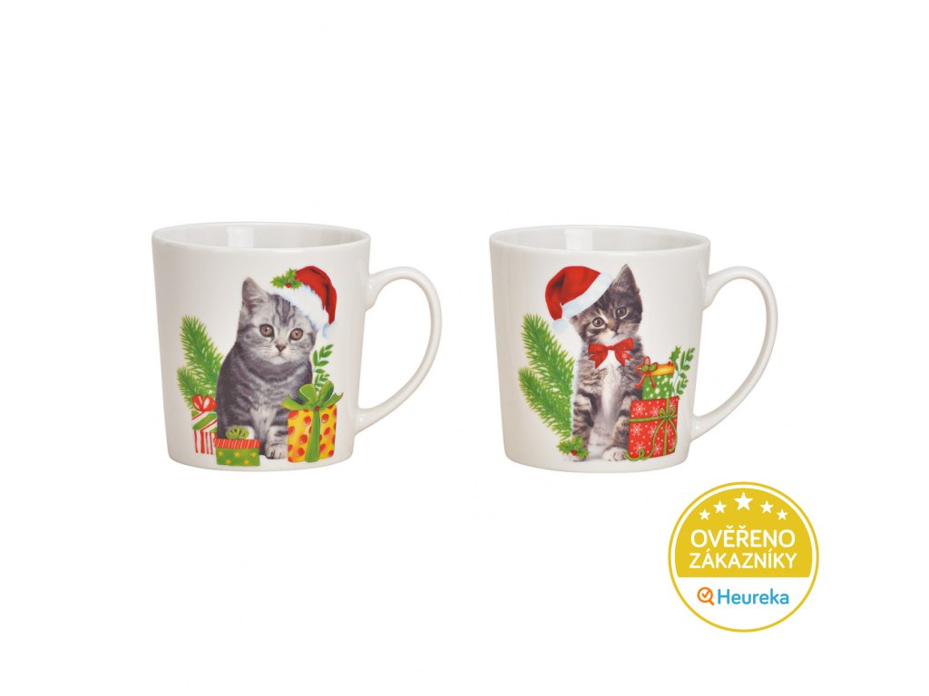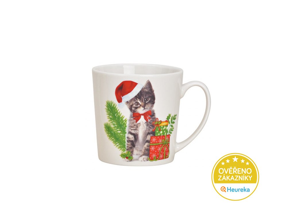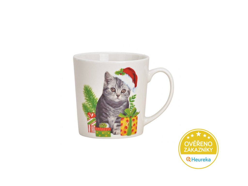 Velký porcelánový hrnek s vánoční kočičkou ve dvou variantách. Vánoční punč nebo horká čokoláda ještě nikdy nechutnaly lépe! Objem 480 ml.