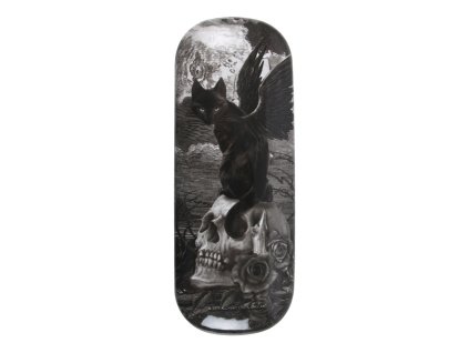 Stylové pevné pouzdro na brýle s černou kočkou - čarodějnicí v designu Lisa Parker. Součástí je také čistící hadřík.