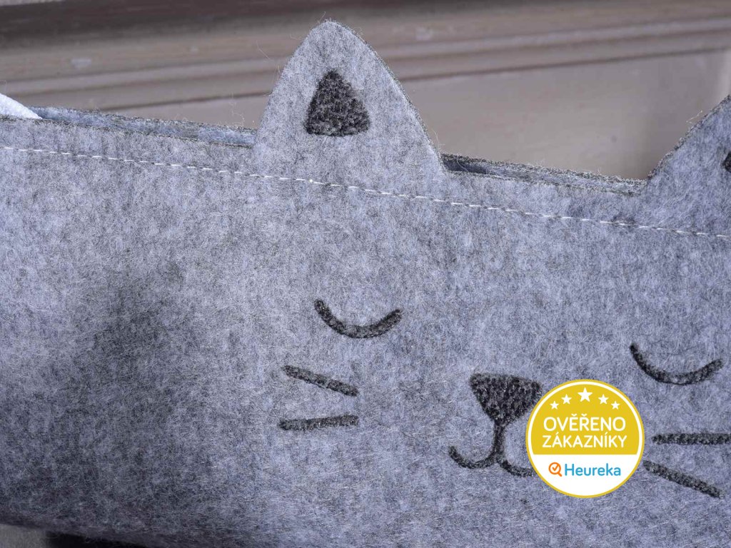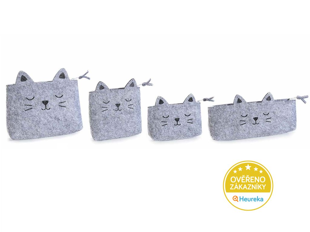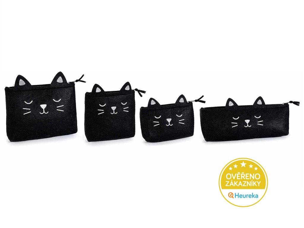 Sada 4 praktických filcových organizérů s kočkou - perfektní do kabelky, batůžku, na kabely, kosmetiku, psací potřeby. Slaďte se do kočičího stylu! V černé nebo šedé barvě.