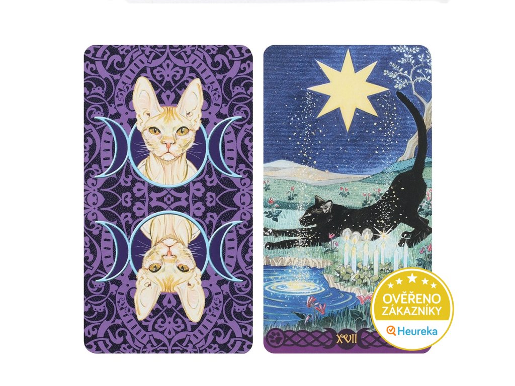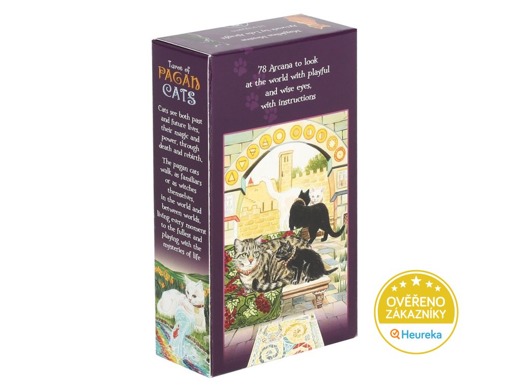 Originální tarotové karty z autorské dílny Magdelina Messina & Lola Airaghi obsahují 22 karet Velkých arkán a 56 karet Malých arkán. Krásné kočičí motivy kombinují univerzální symboliku a archetypy Rider Waite tarotu s pohanskými symboly. Pokud je kočka vaším duchovním průvodcem, s těmito taroty nesáhnete vedle.