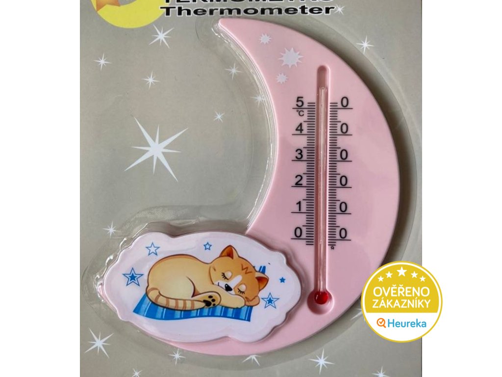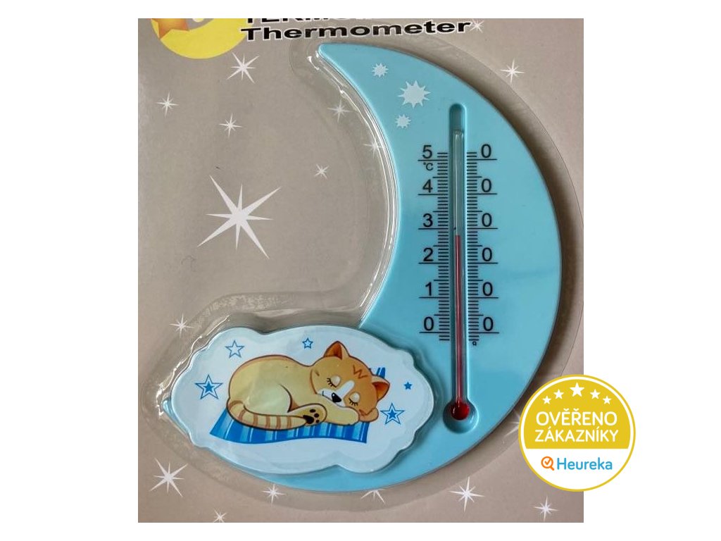 Teploměr se spícím koťátkem - bleděmodrý, růžový